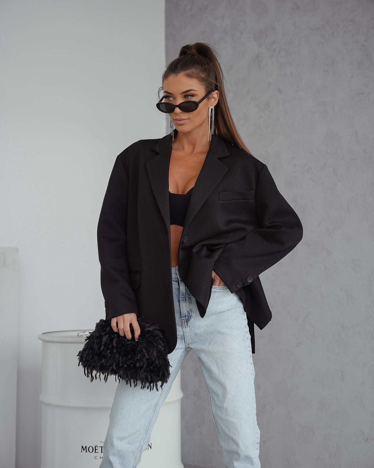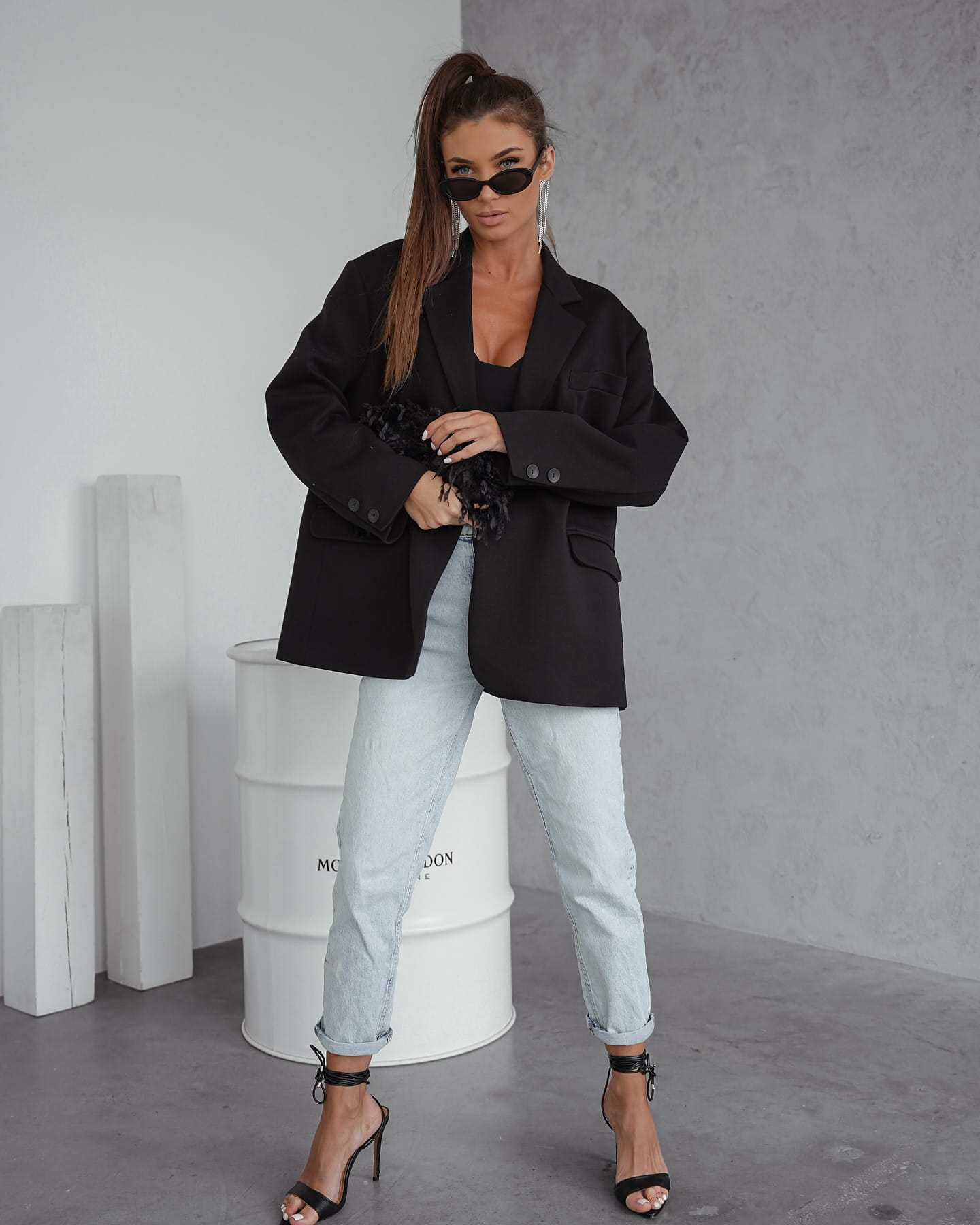 Bawełniana marynarka damska oversize Me Gusta – czarna, wygodna i stylowa