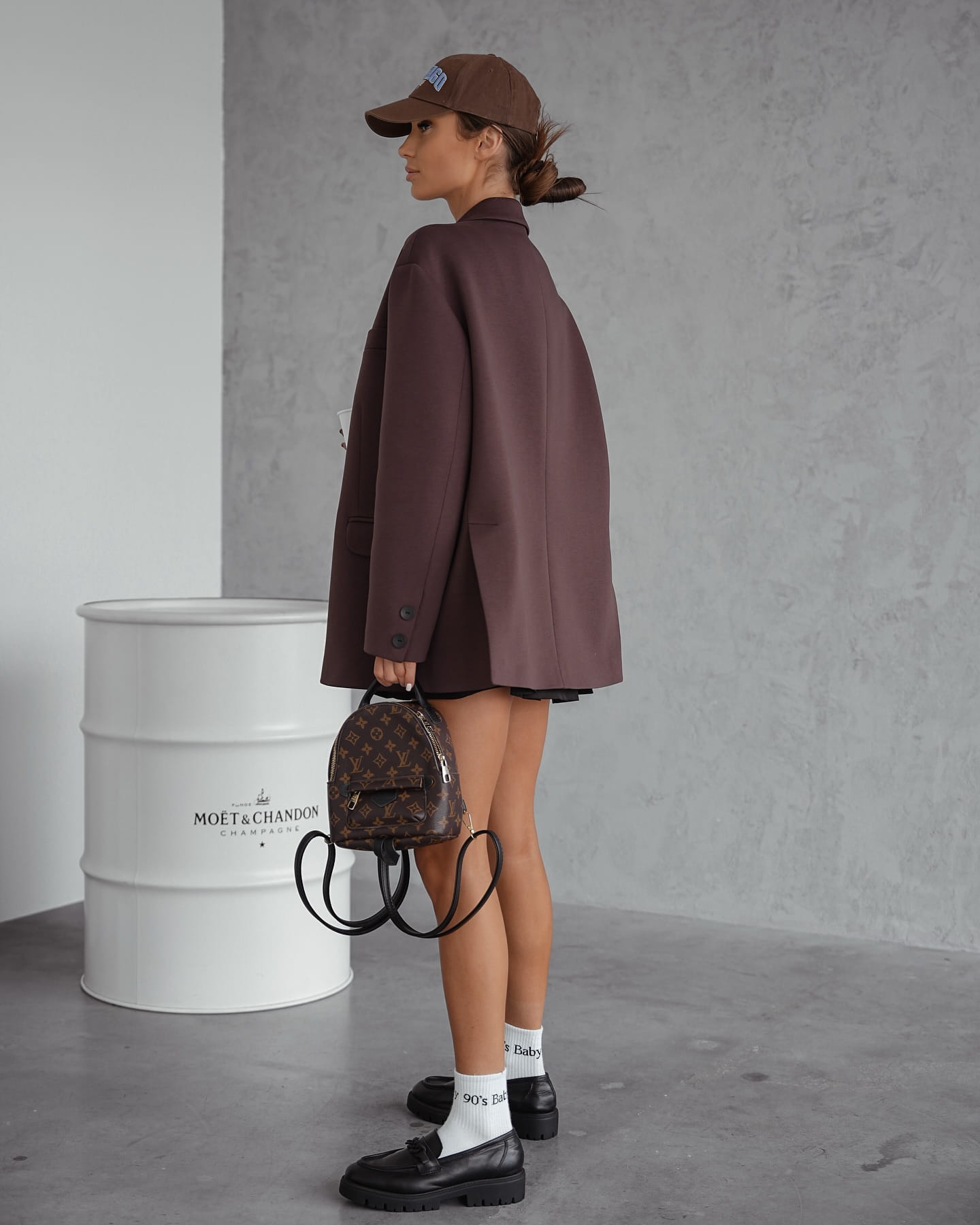 Bawełniana marynarka damska oversize Me Gusta – czekoladowa, wygodna i stylowa