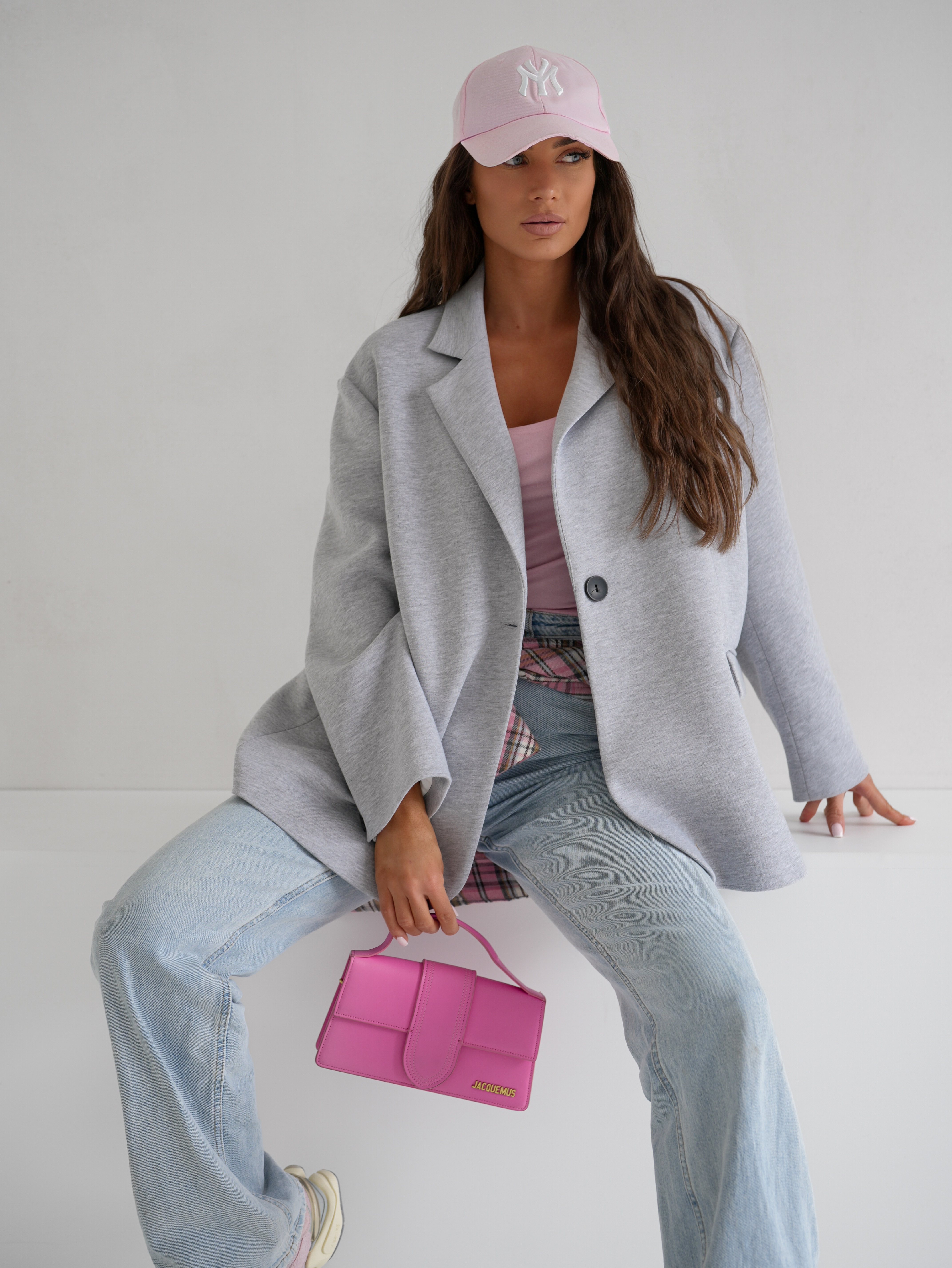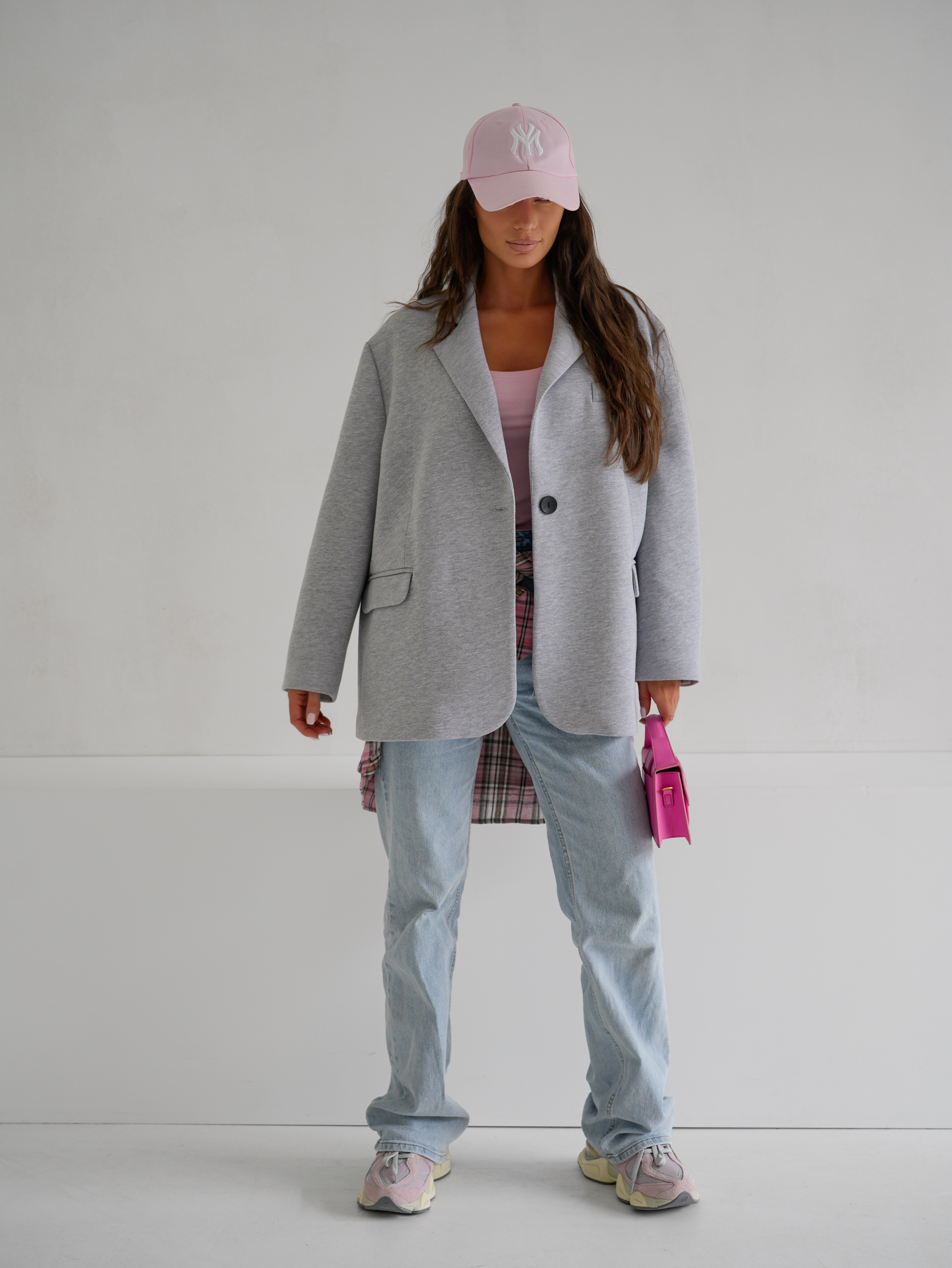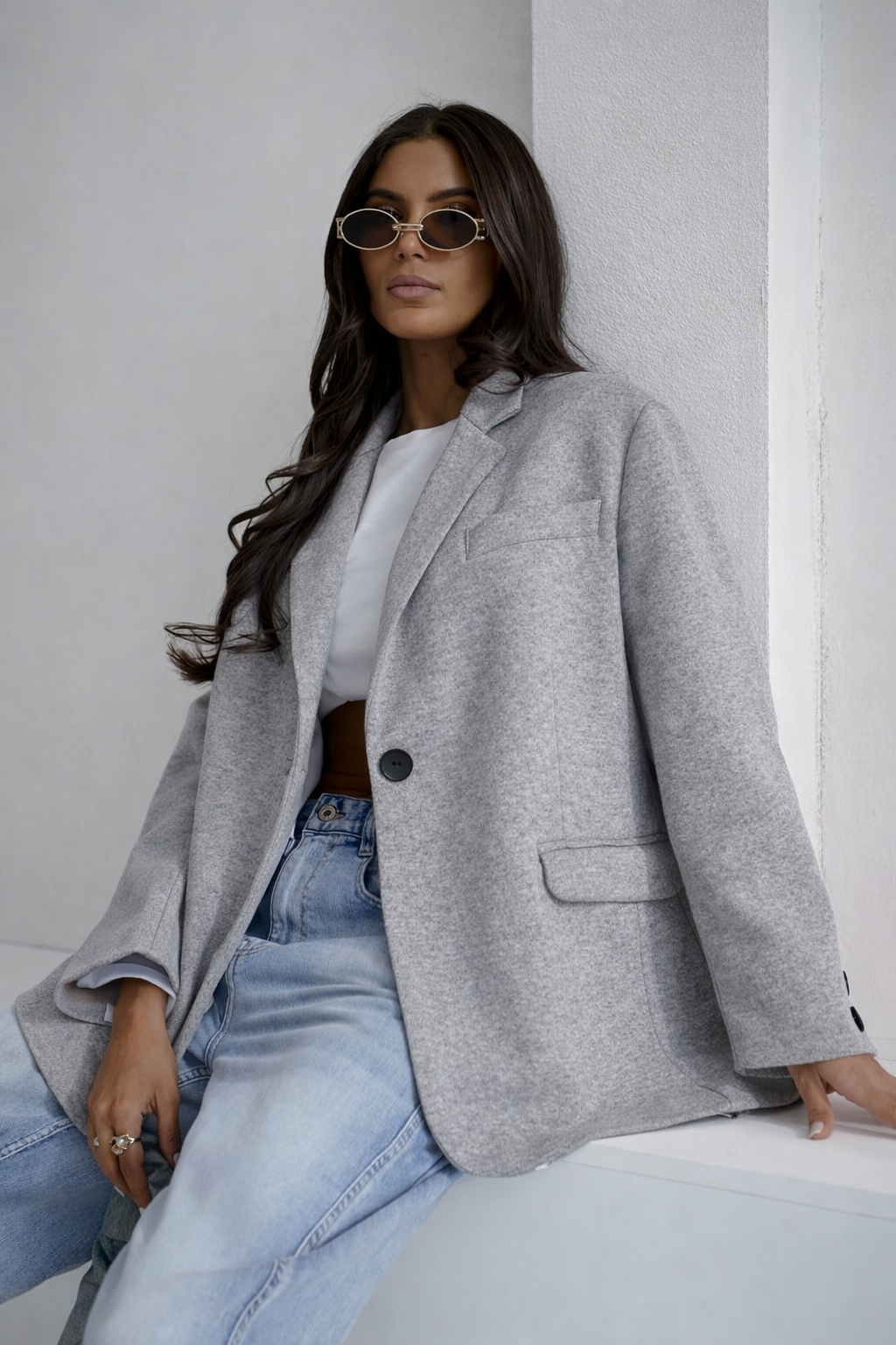 Bawełniana marynarka damska oversize Me Gusta – szary melanż, wygodna i stylowa
