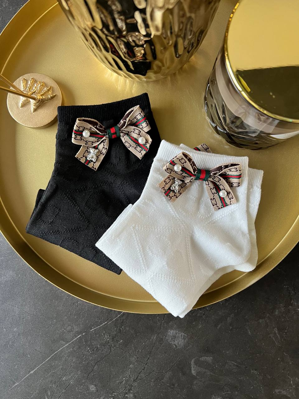 Białe skarpetki z bawełny z kokardką