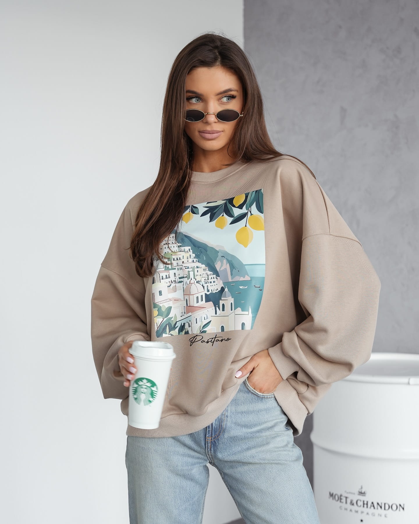 Klasyczna bluza damska oversize ozdobiona przepięknym nadrukiem.