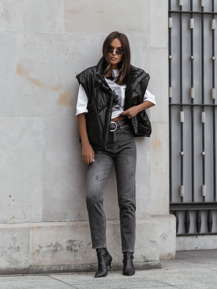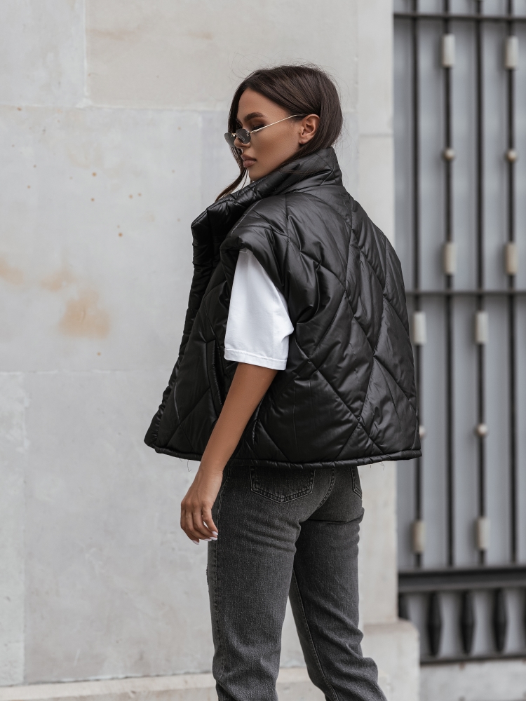 Czarna pikowana kamizelka oversize damska Cocomore