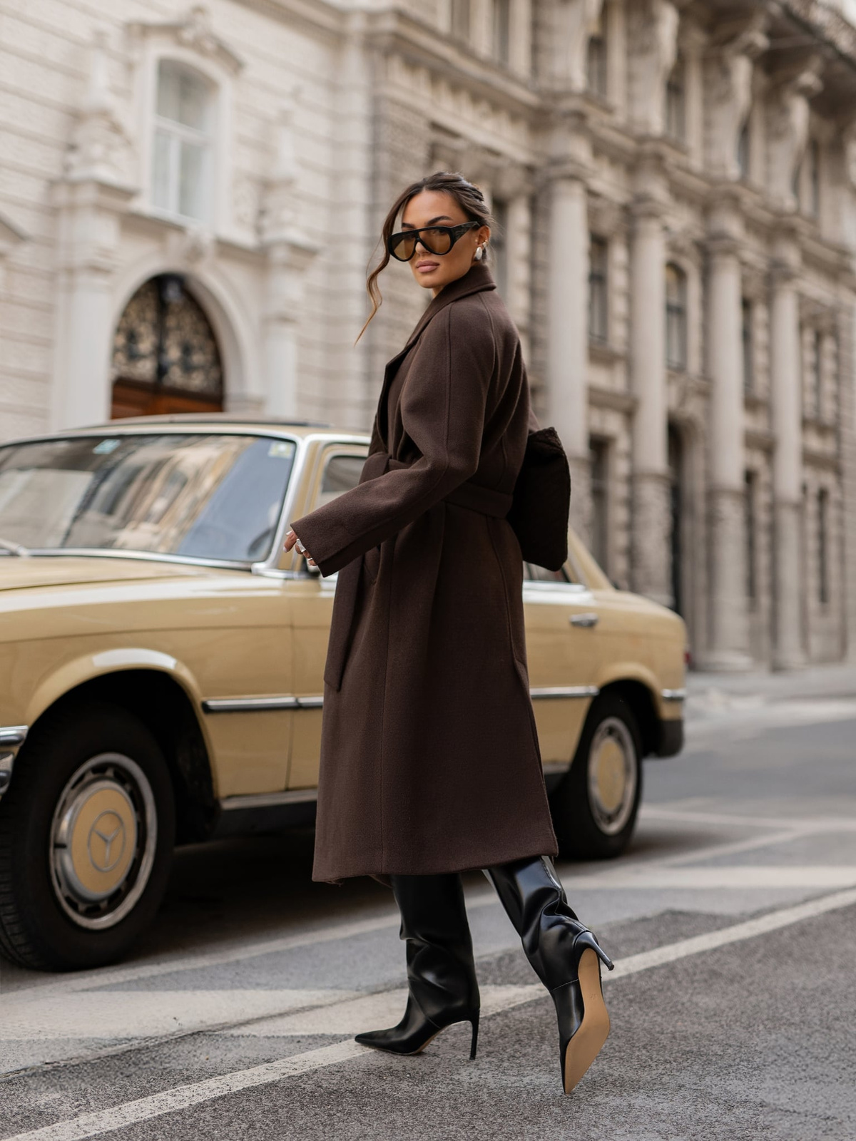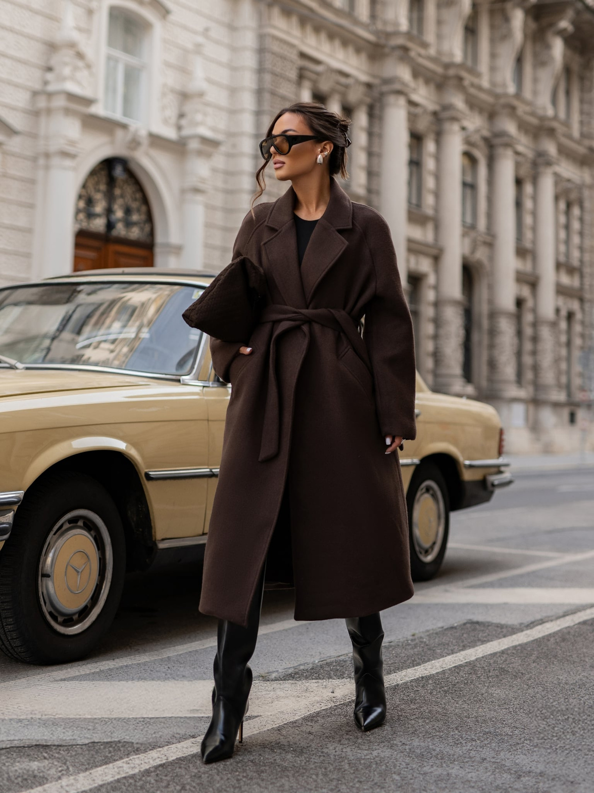 Czekoladowy płaszcz damski Cocomore to ponadczasowy wybór do jesienno-zimowych stylizacji. Model o długości midi z paskiem w talii pięknie podkreśla sylwetkę, dodając elegancji i szyku. Wykonany z ciepłej, przyjemnej w dotyku tkaniny, zapewnia komfort w chłodniejsze dni. Płaszcz ma klasyczny kołnierz, praktyczne kieszenie i minimalistyczny krój, dzięki czemu pasuje zarówno do codziennych, jak i wieczorowych stylizacji. Idealny dla kobiet ceniących klasykę w nowoczesnym wydaniu.