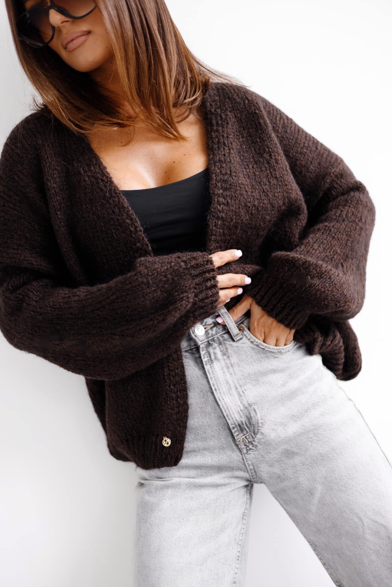 Kardigan damski oversize na co dzień Madame Sue czekoladowy