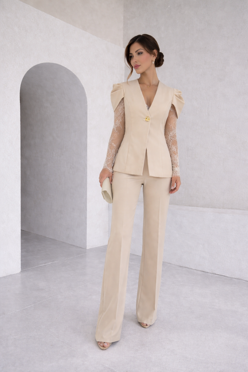 zestaw damski z wiskozy, elegancki komplet damski, komplet damski na komunię, komplet damski na wesele, komplet damski z koronką, komplet damski ze spodniami, wizytowy komplet damski, damski komplet elegancki