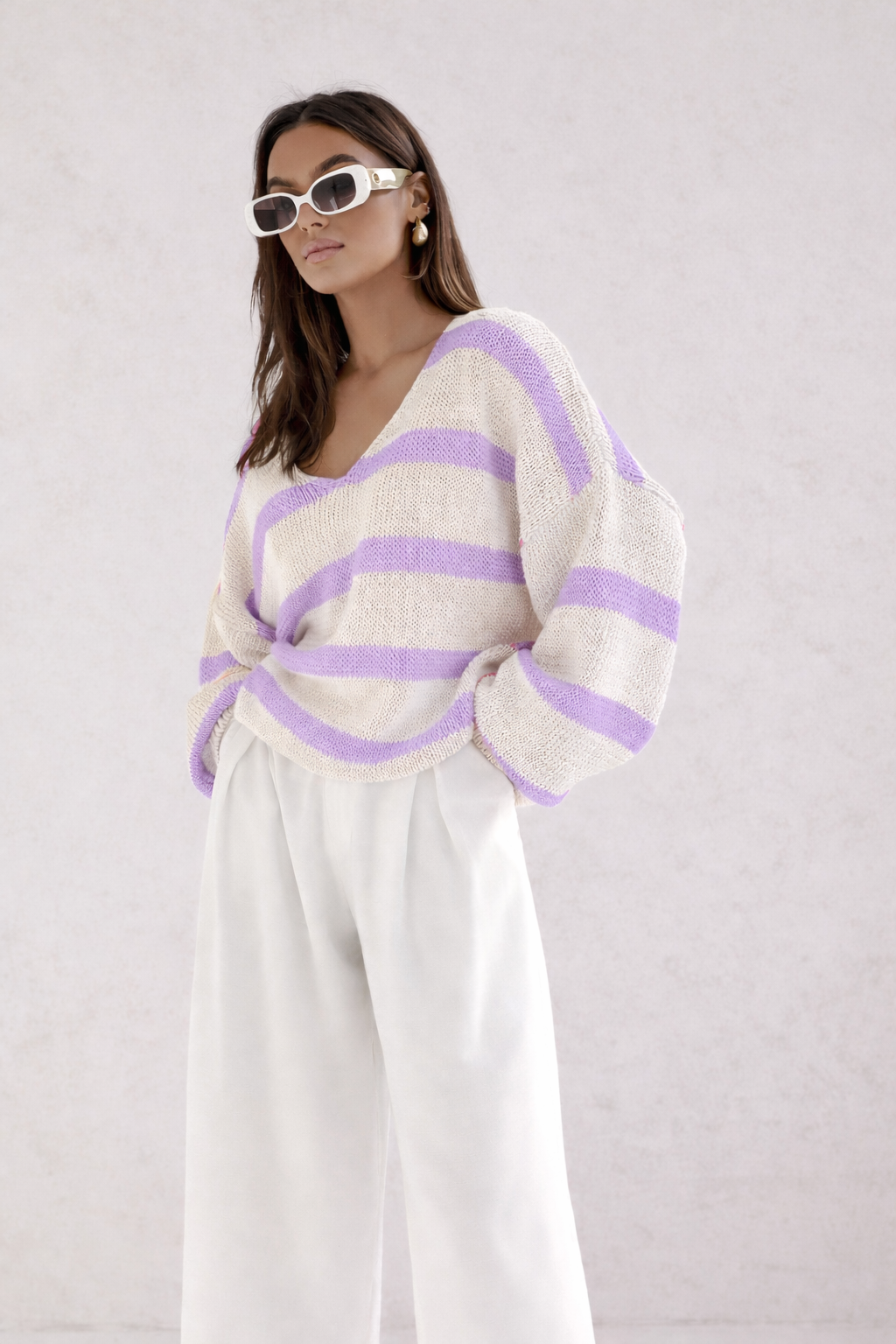 Luźny sweter damski w paski Cocomore Lizbona