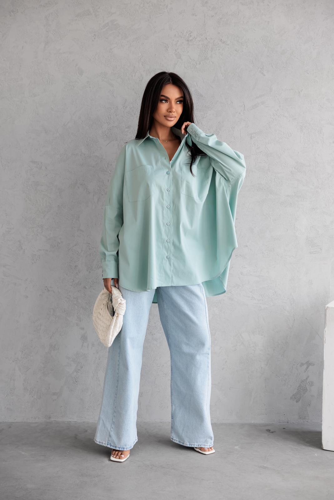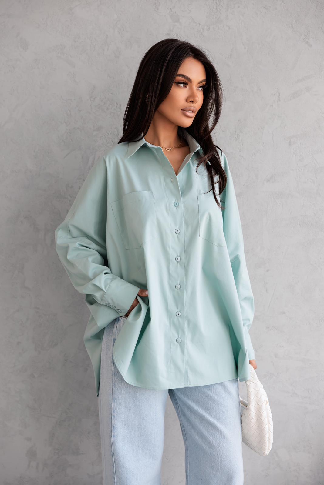 Miętowa koszula damska oversize Me Gusta
