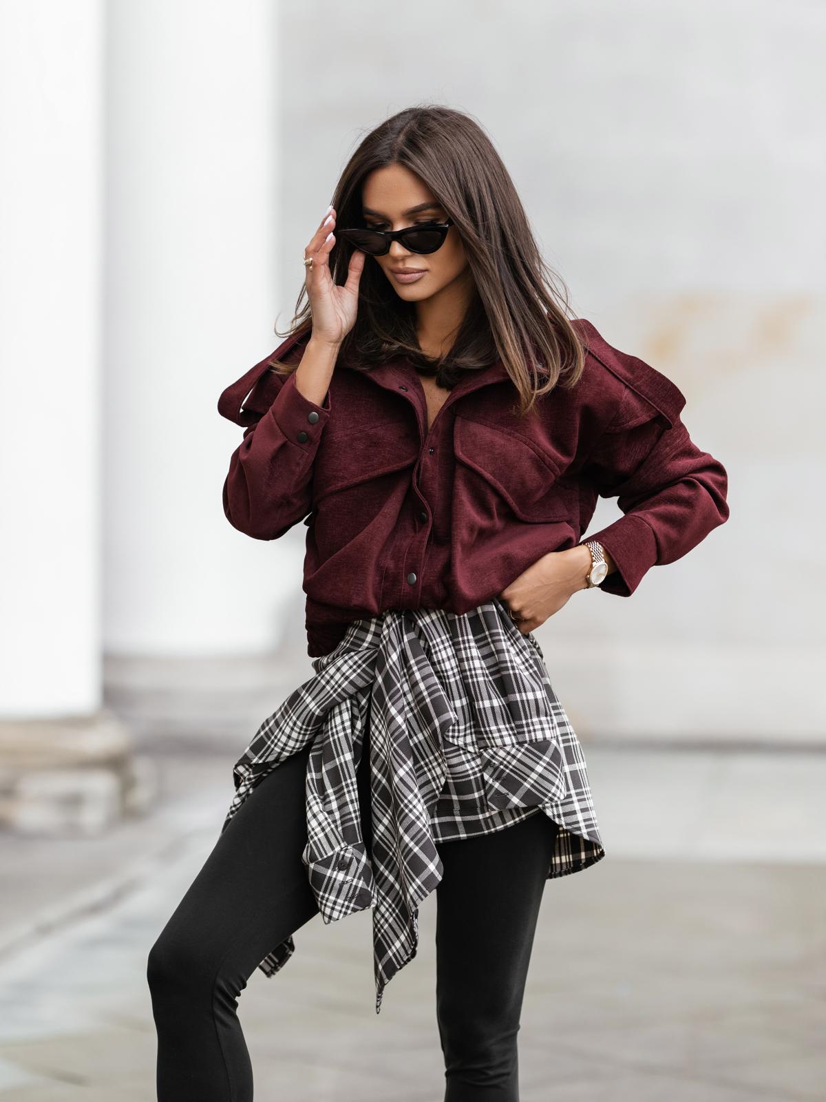 Modna kurtka bomberka damska oversize z kieszeniami bordowa Me Gusta