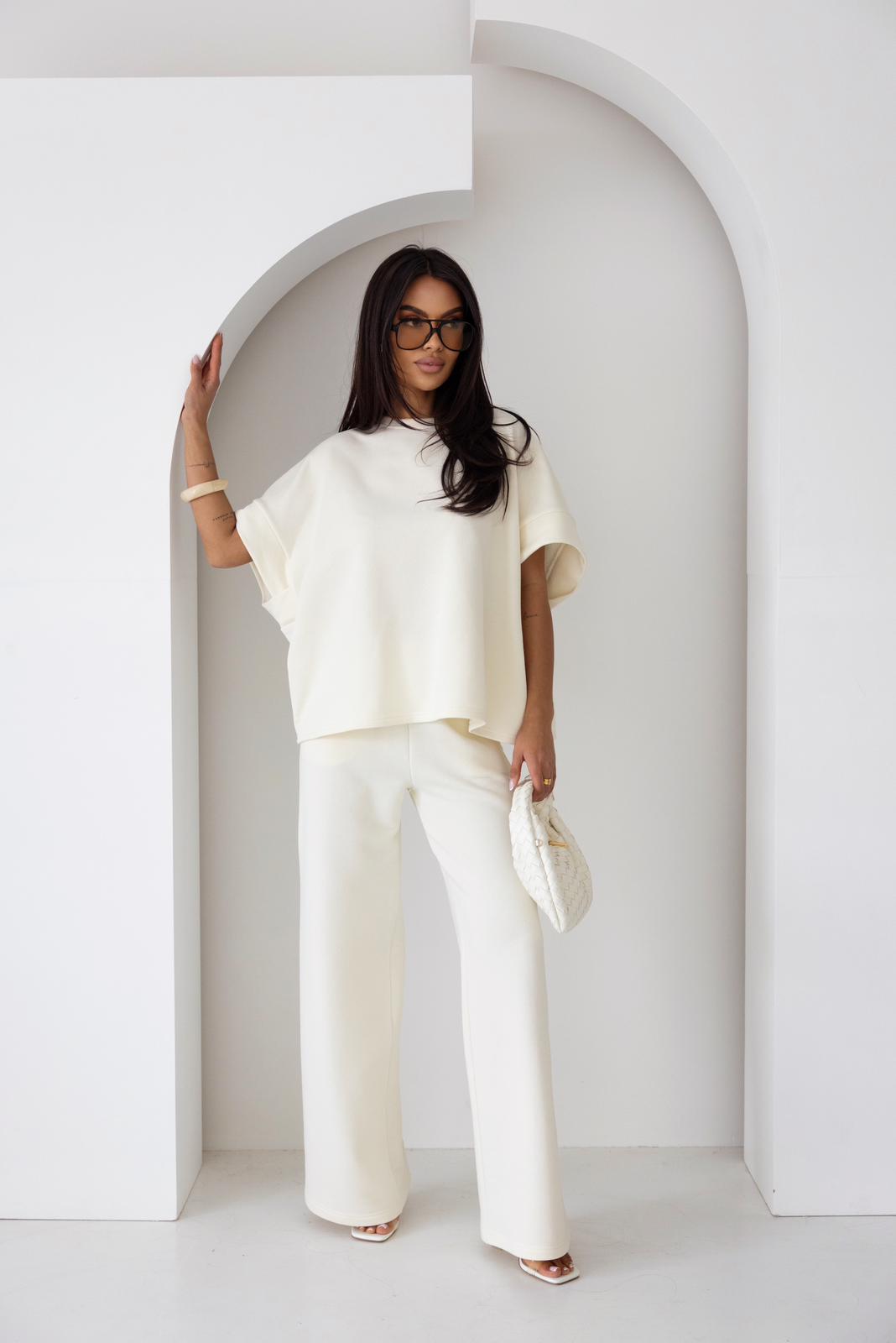 Stylowy komplet damski to idealne połączenie wygody i nowoczesnego designu. Oversize’owa bluzka z krótkim rękawem oraz szerokie spodnie z luźną nogawką tworzą modny, minimalistyczny look na co dzień i na wyjścia. Miękki, przyjemny w dotyku materiał zapewnia komfort noszenia, a swobodny krój doskonale wpisuje się w aktualne trendy. Ten elegancki komplet damski sprawdzi się zarówno w casualowych stylizacjach, jak i bardziej stylowych zestawieniach.