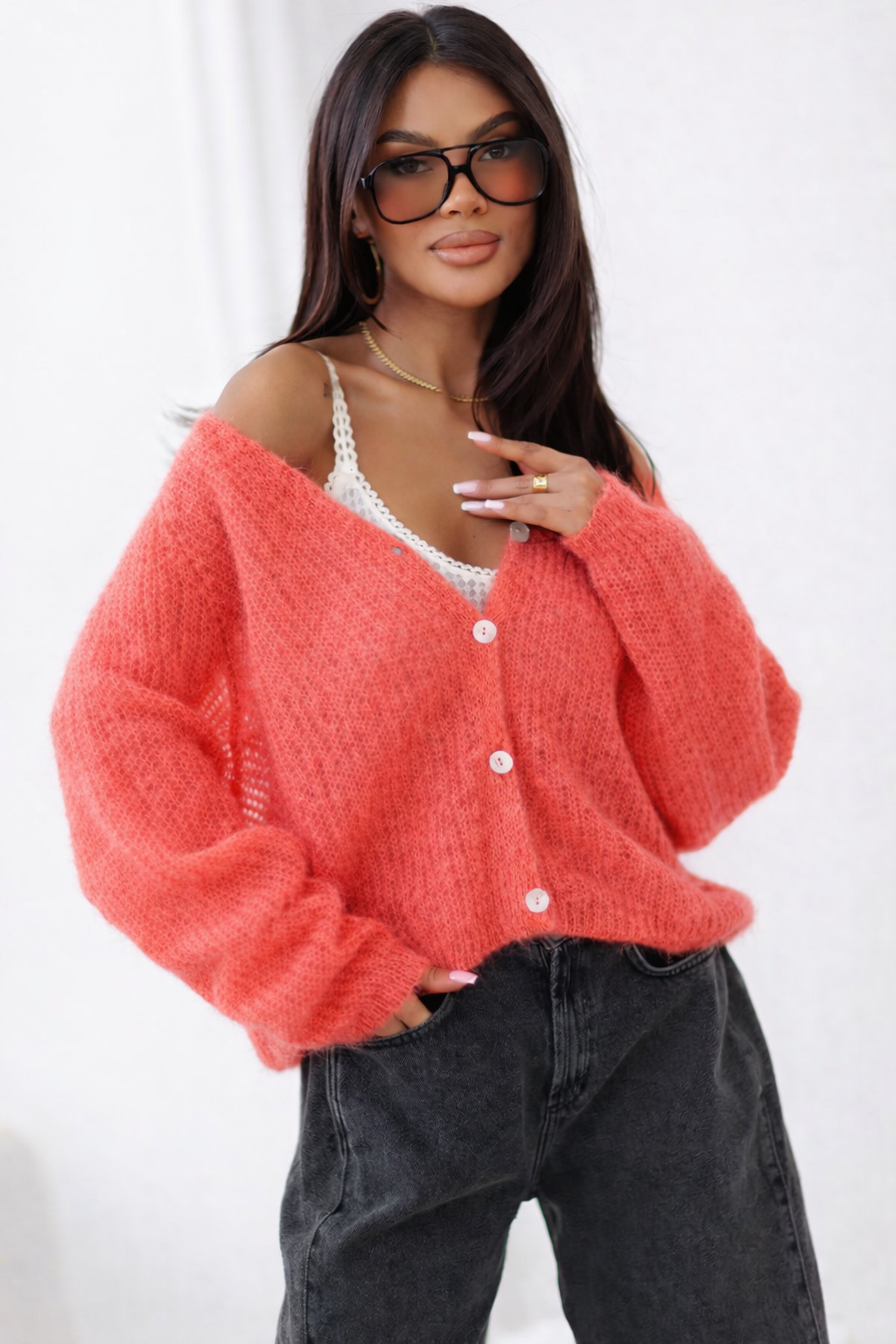 Sweter damski premium z kid moheru i wełny merino Palermo koralowy