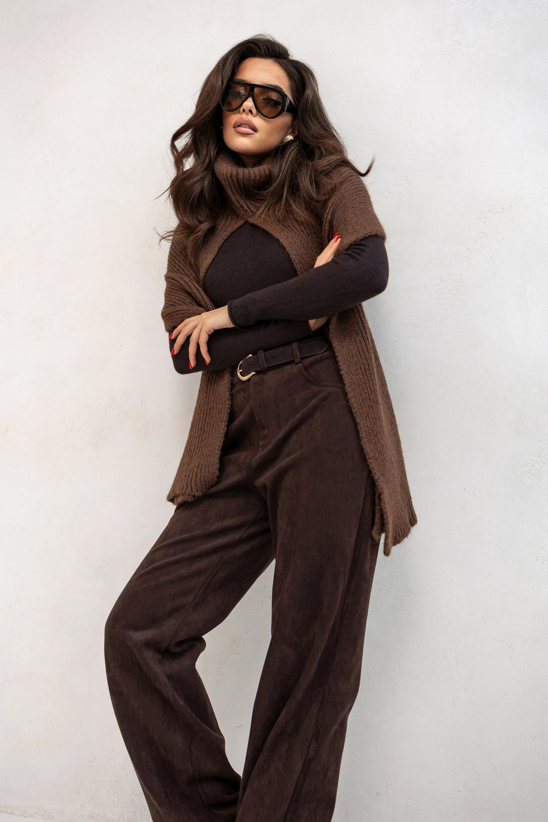 Sweterkowy komin z szalikiem Cocomore czekoladowy