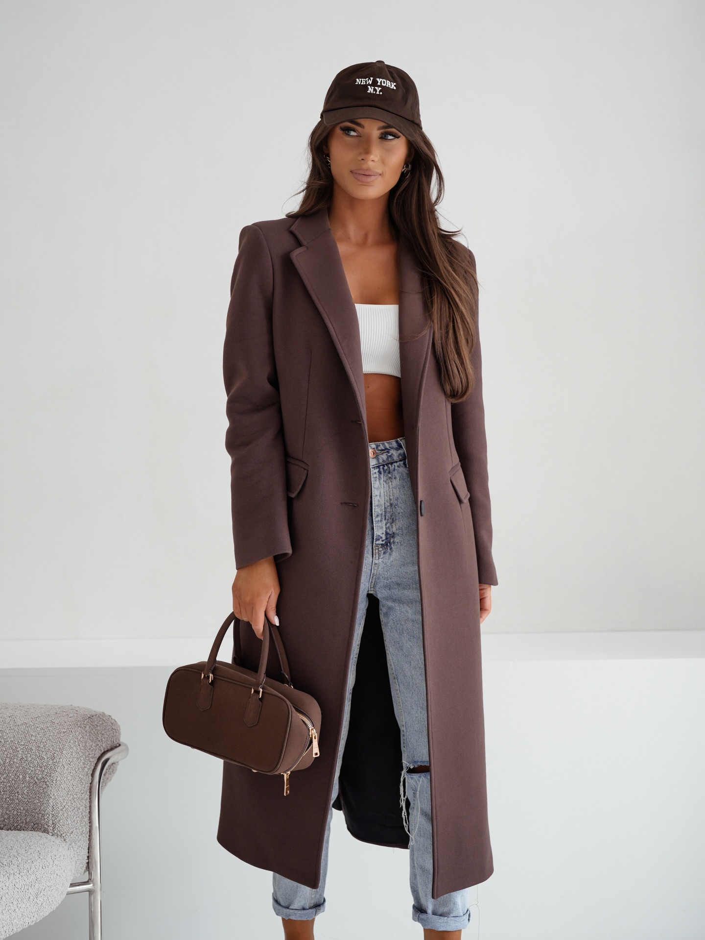 Wiosenny płaszcz damski Me Gusta bawełniany brązowy
